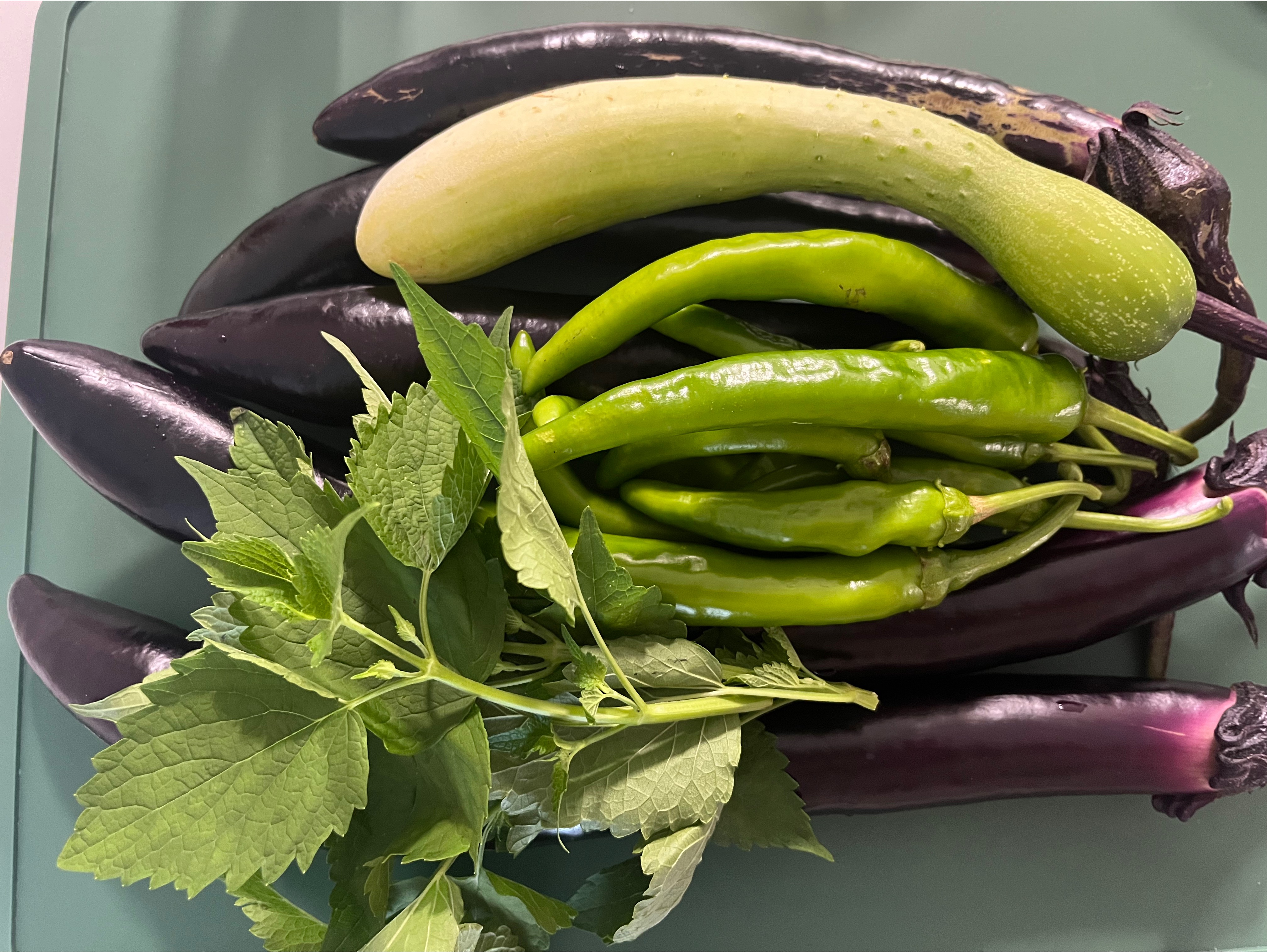 가지, 오이, 고추, 방앗잎 골고루 수확한 날,